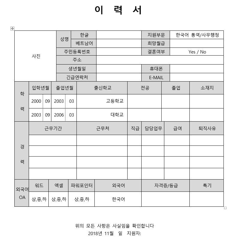 • Người Hàn Quốc rất quan tâm đến học vấn, vì vậy các bạn hãy viết phần này thật chi tiết và cẩn thận.