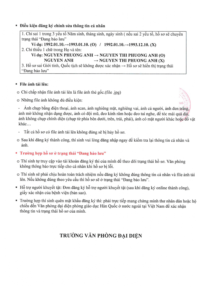 – Bộ Giáo dục Hàn Quốc không chấp cấp chứng chỉ, thí sinh tự in miễn phí tại trang: www.topik.go.kr
