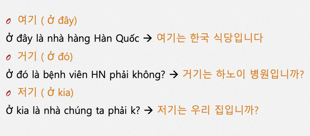 여기/ 거기/ 저기 : Ở đây/ ở đó/ ở kia