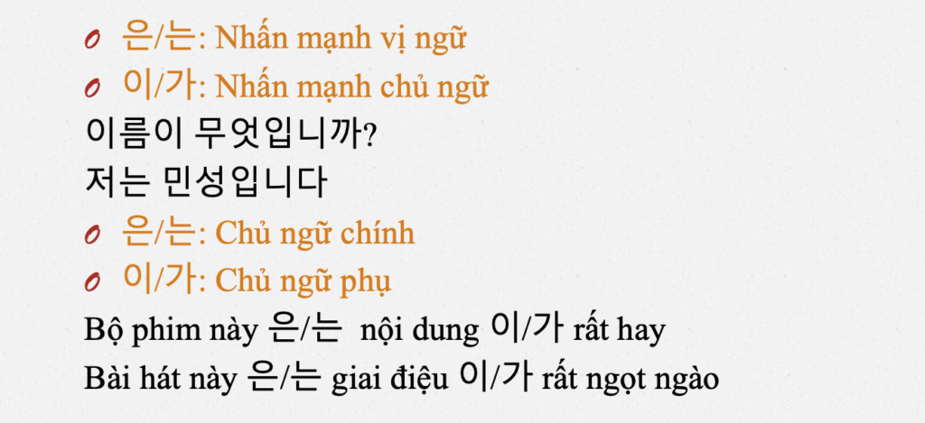 So sánh sự giống và khác nhau giữa 은/는 & 이/가