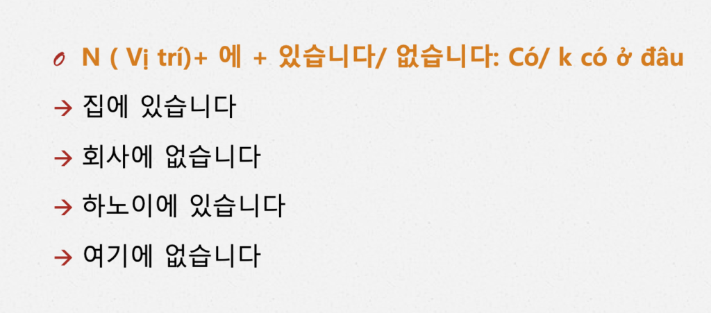 에 있습니다/ 없습니다: Vị trí có ở đâu/ k có ở đâu